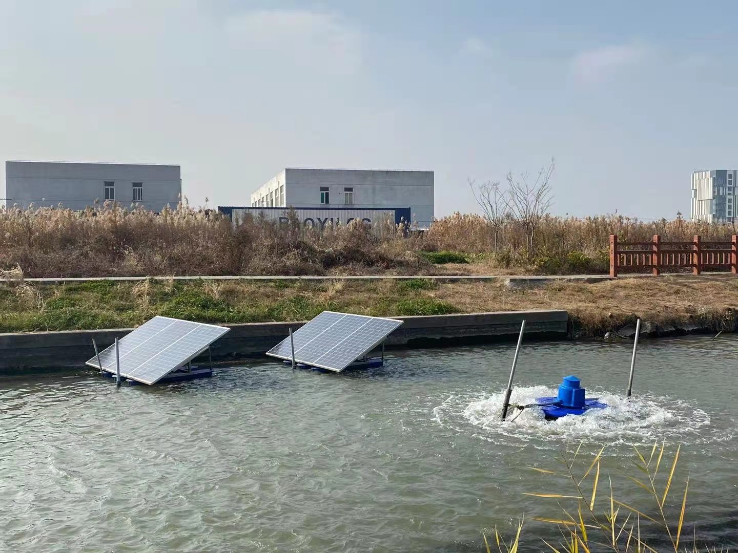 上海嘉定區(qū)5臺太陽能涌浪安裝現(xiàn)場--綠博斯增氧機