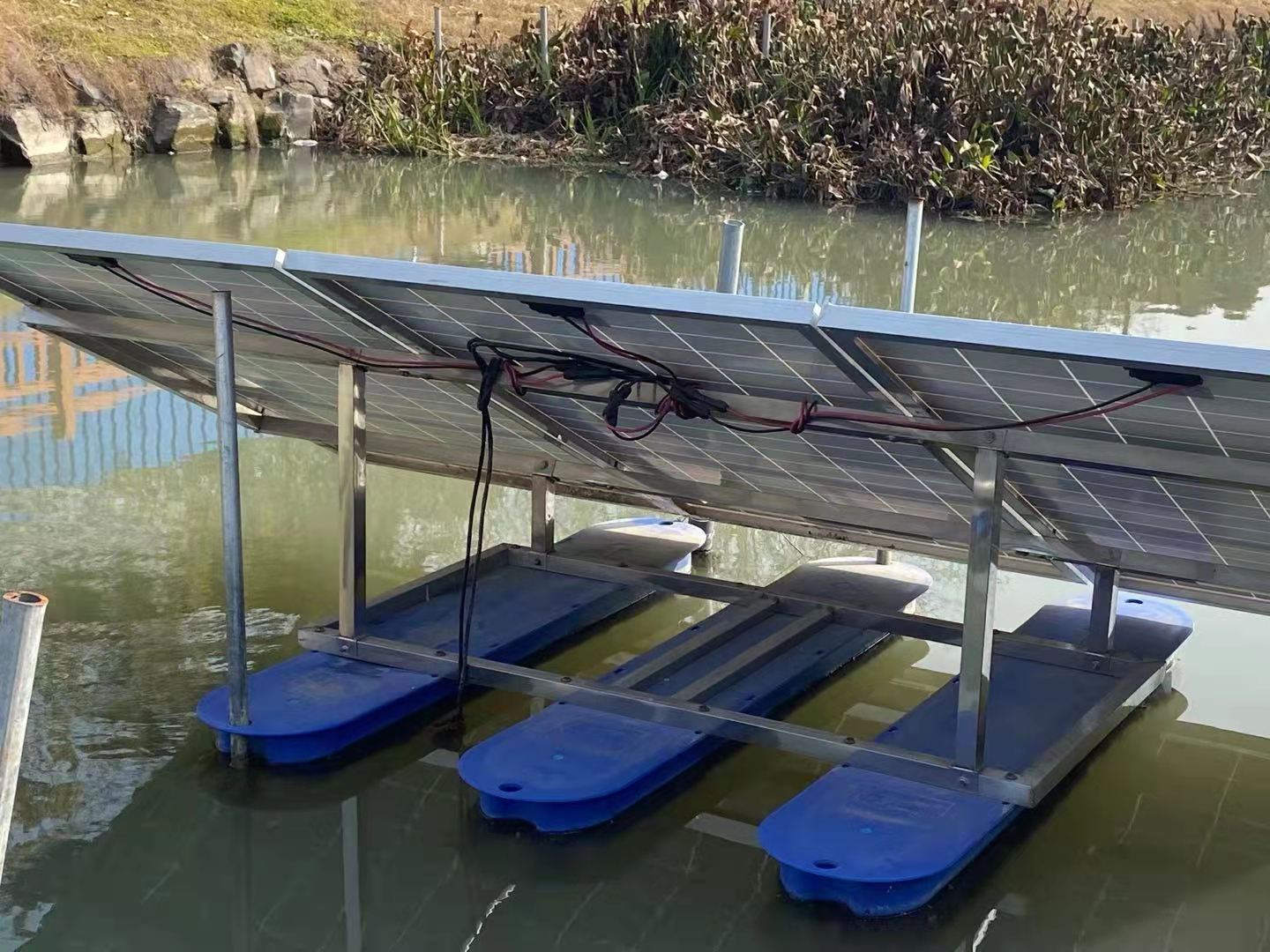 云南昆明15臺太陽能曝氣機安裝現(xiàn)場